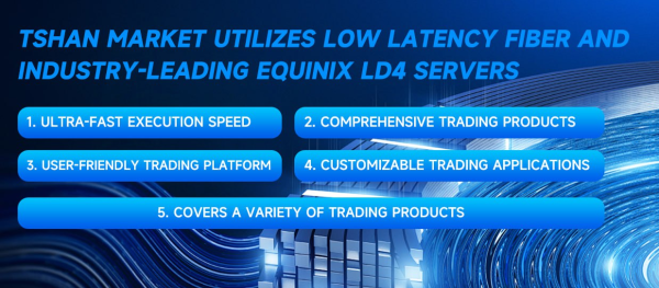 Ultra-fast Execution Speed: With an average execution speed of less than 30 milliseconds, Tshan Markets leverages low-latency optical fibers and industry-leading Equinix LD4 servers, ensuring timely and accurate information transmission.